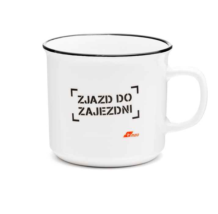 Ręcznie robiony kubek ceramiczny z napisem „Zjazd do zajezdni”, o pojemności 350 ml.