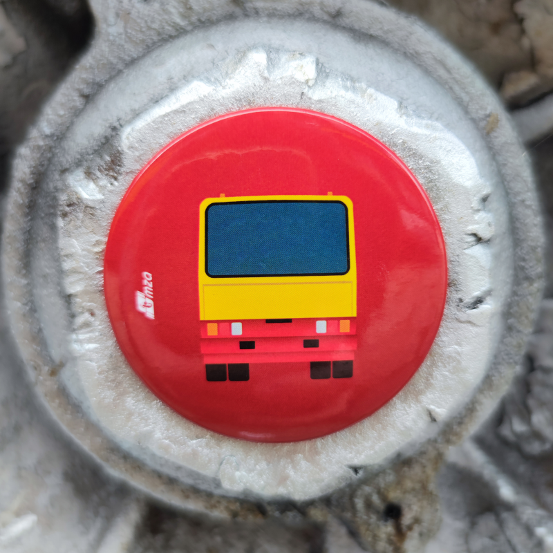 Magnes dekoracyjny z kultowym autobusem Ikarus.Kolor czerwony, tył autobusu.Średnica 5,5 cm. Możesz skompletować na swoją lodówkę różne wersje magnesów!