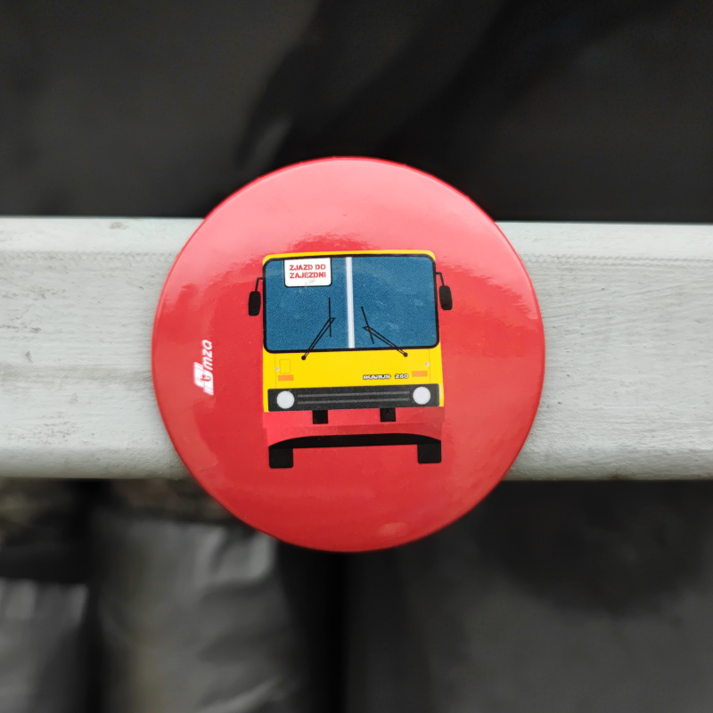 Magnes dekoracyjny z otwieraczem, z kultowym autobusem Ikarus.Kolor czerwony.Średnica 5,5 cm. Możesz skompletować na swoją lodówkę różne wersje magnesów!