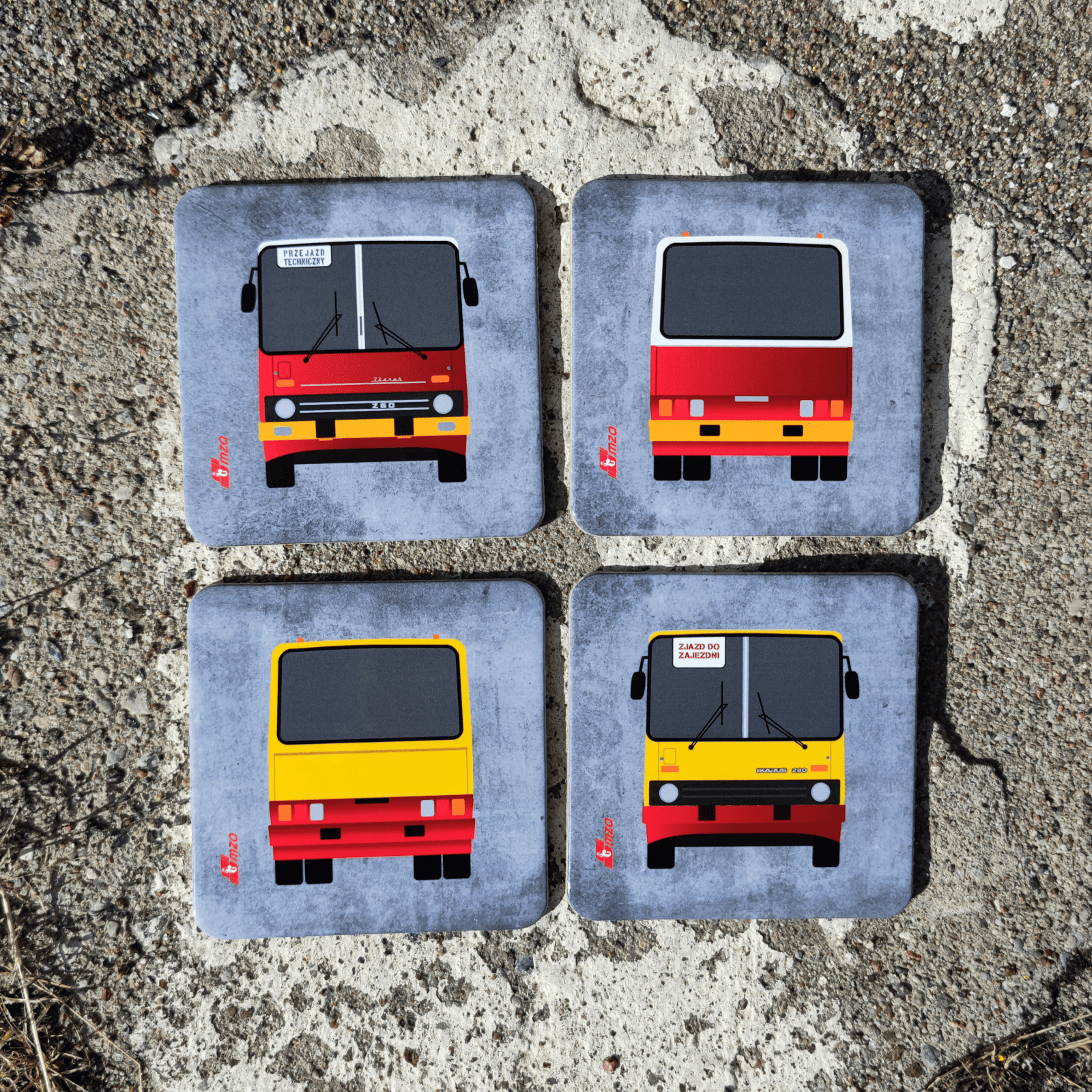 Podkładki korkowe z kultowym autobusem Ikarus, komplet 4 sztuk